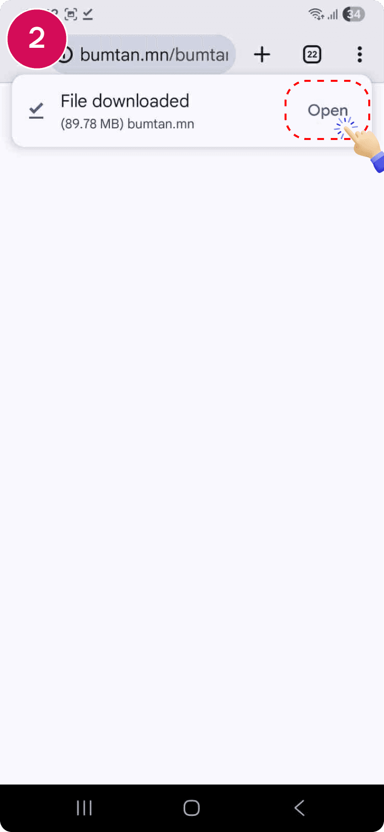 Татагдаж дууссаны дараа "Open" товч дарна.