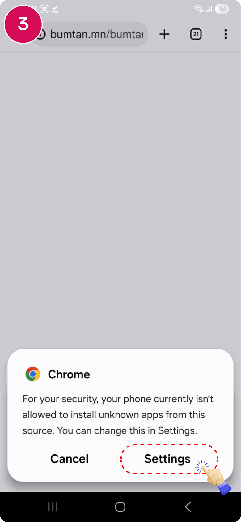 Тохиргоо хийх санамжын цонхноос "Settings" товч дарна.