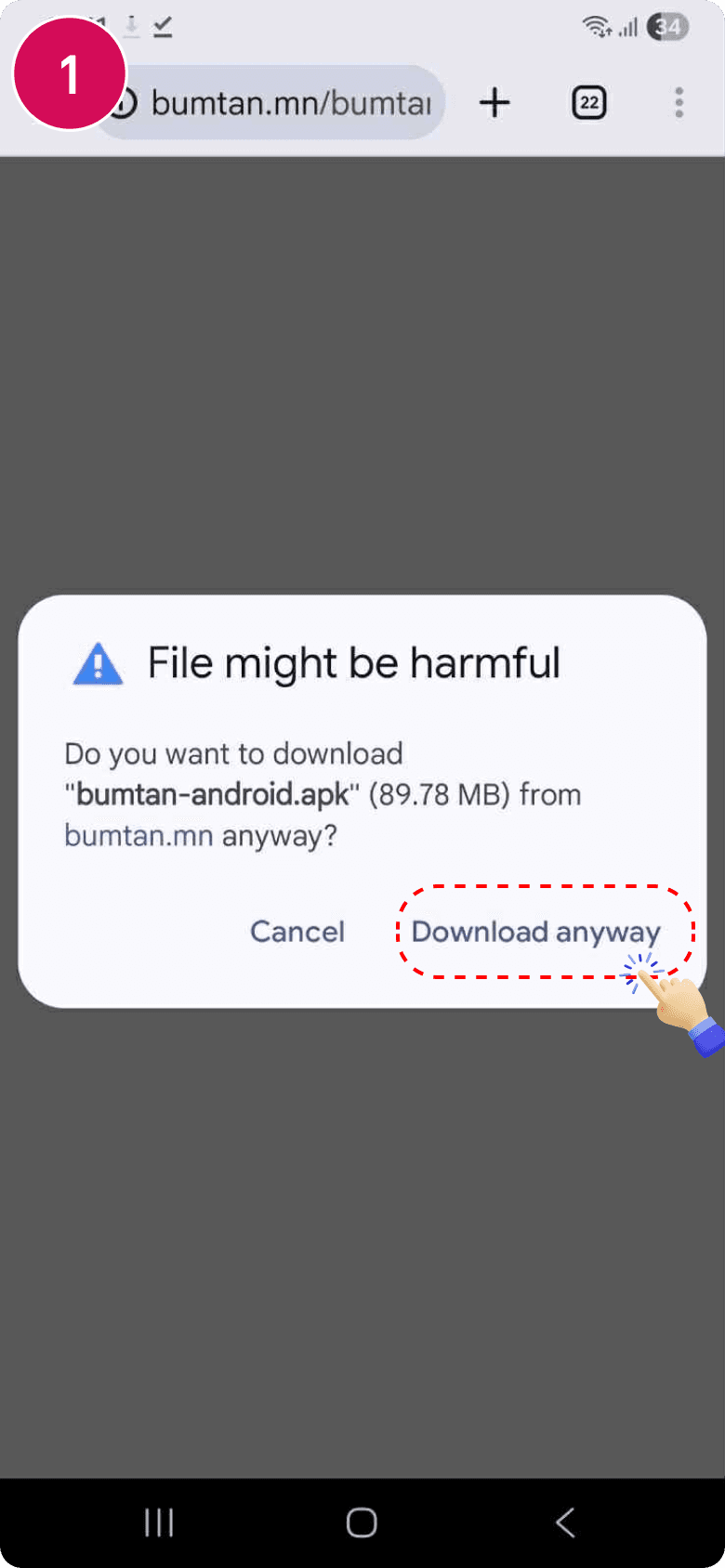 Дээр байгаа татах товч дарж гарч ирсэн цонхон дээр "Download anyway" дарж татна.